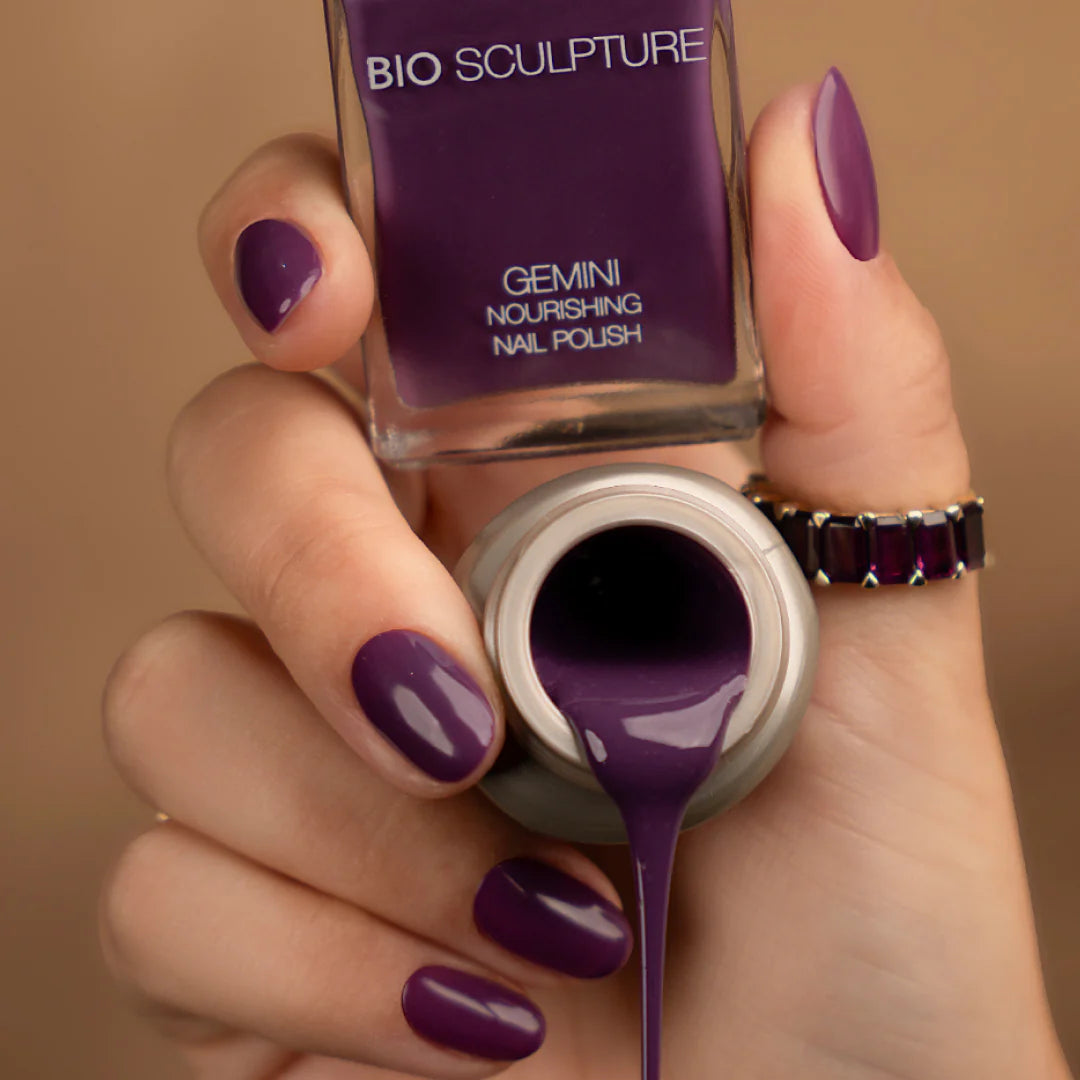 Introducing Gemini Nourishing Nail Polish, housed in our signature square bottle, this captivating colour range offers a luxurious nail experience.